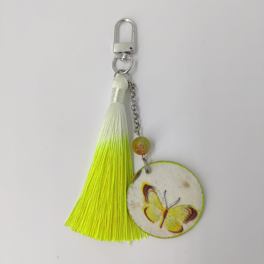 Handcrafted tassels and decoupage are superior quality with metal rings. The hook can be used around keys, zips, bag loops etc.,